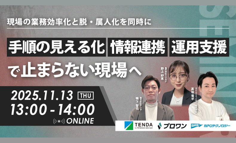 | イベント | 現場の業務効率化と脱・属人化を同時に。 手順の見える化×情報連携×運用支援で止まらない現場へ |